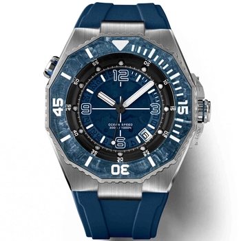 トップカスタムロゴ43mm炭素繊維ベゼルメンズ時計自動機械高級スリータSW200-1ブルーラバーストラップ用